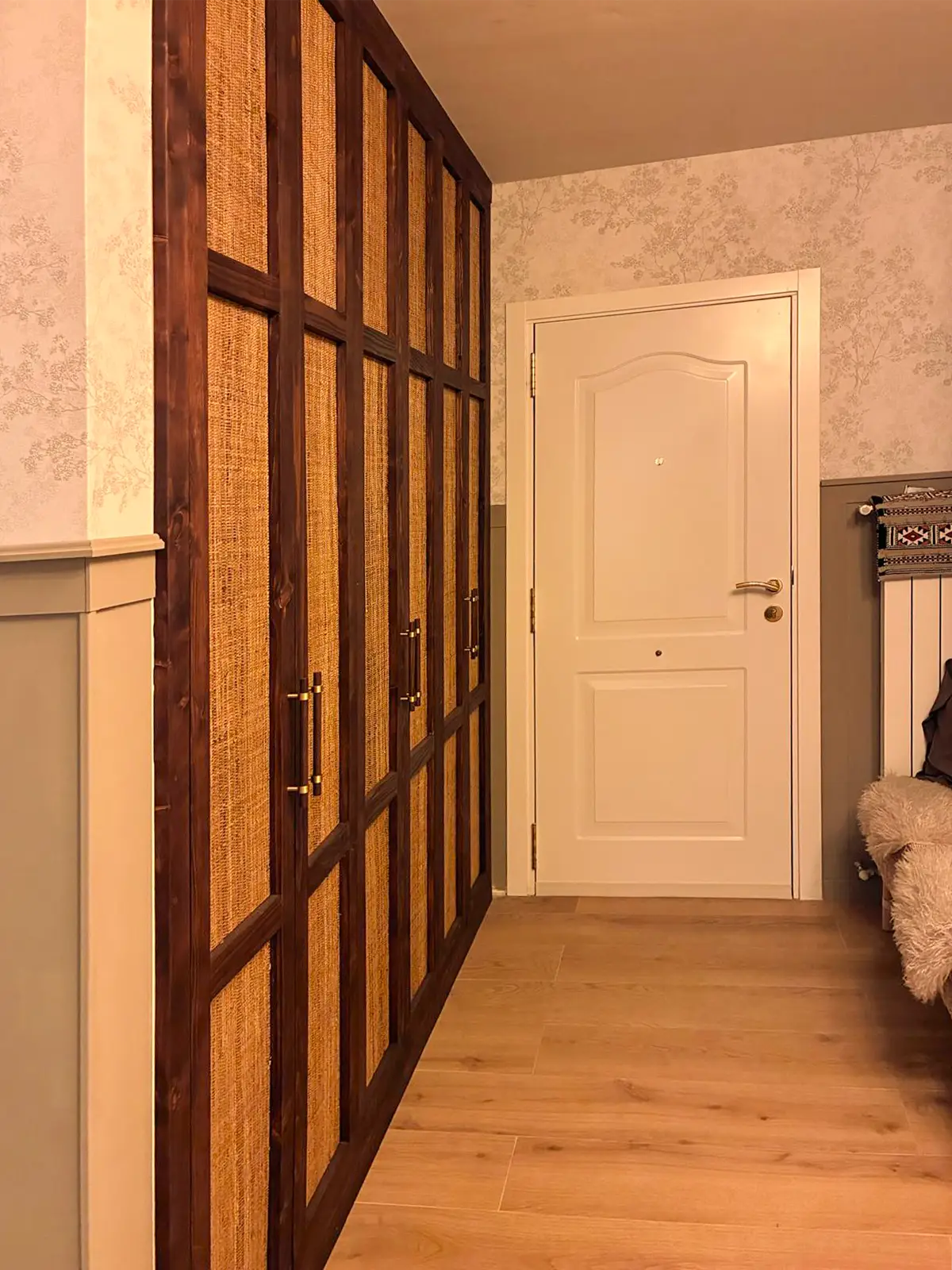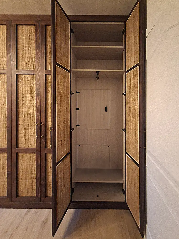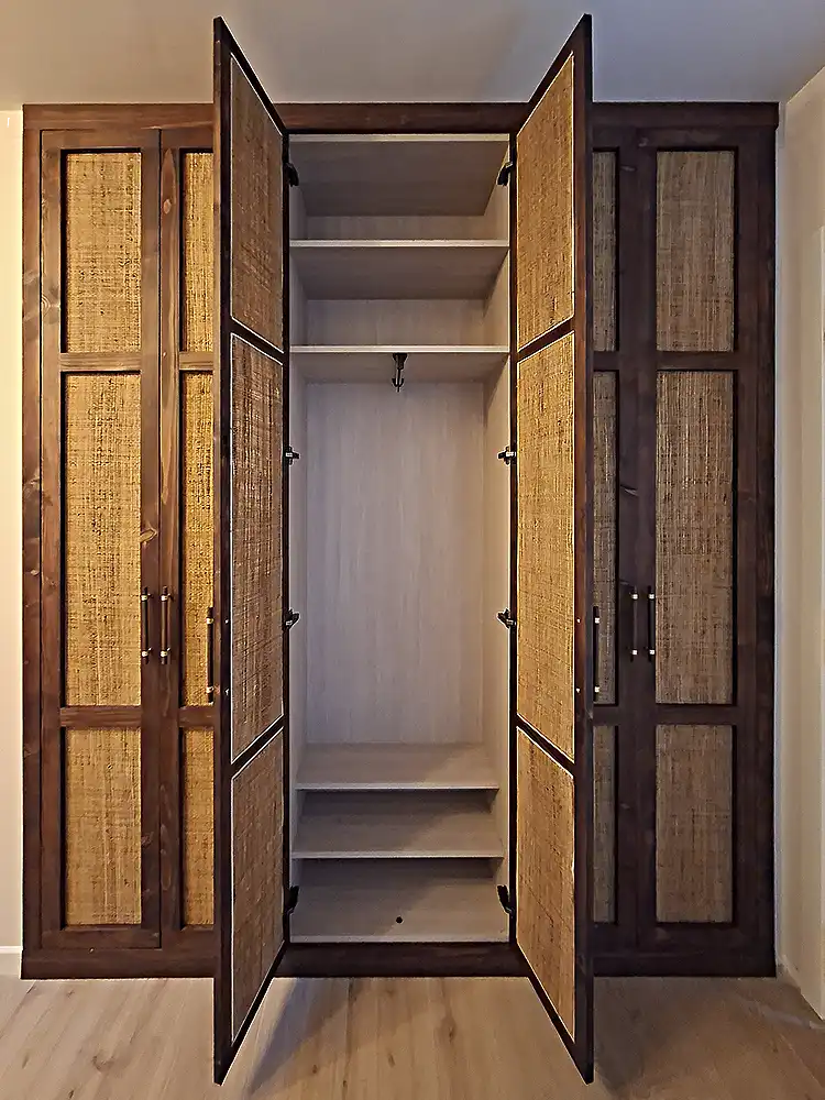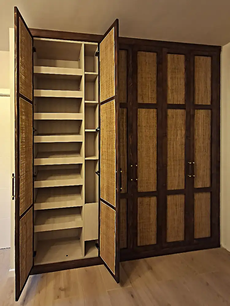 Armario a Medida Japandi, Pino tintado y Ratán.